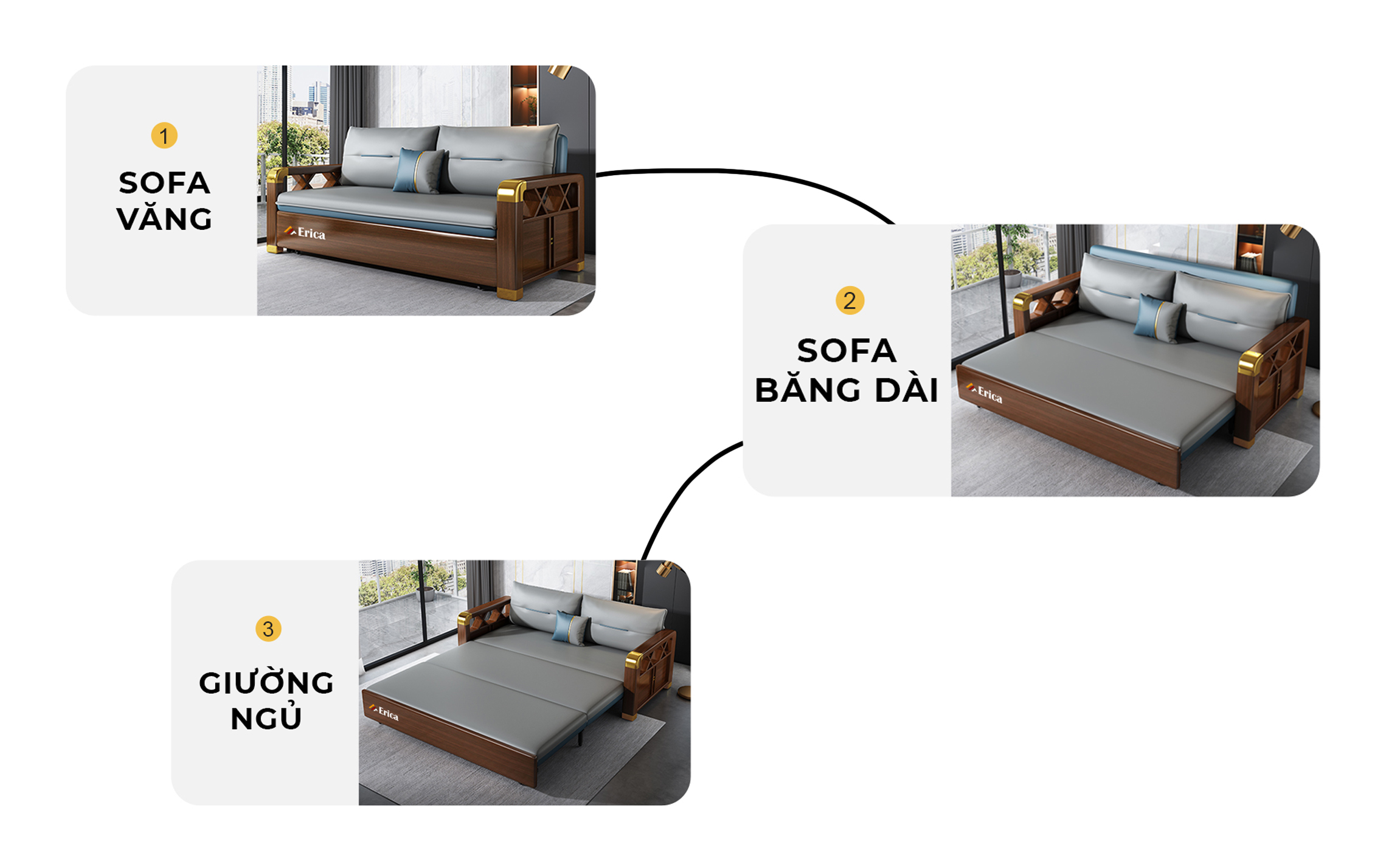 Vì tính linh hoạt đó, Sofa Giường Thông Minh đã trở thành một món đồ nội thất không thể thiếu trong cuộc sống hiện nay. Vì vậy, hãy cùng Nội thất Erica khám phá lợi ích sâu hơn về những lợi ích của em nó nhé!