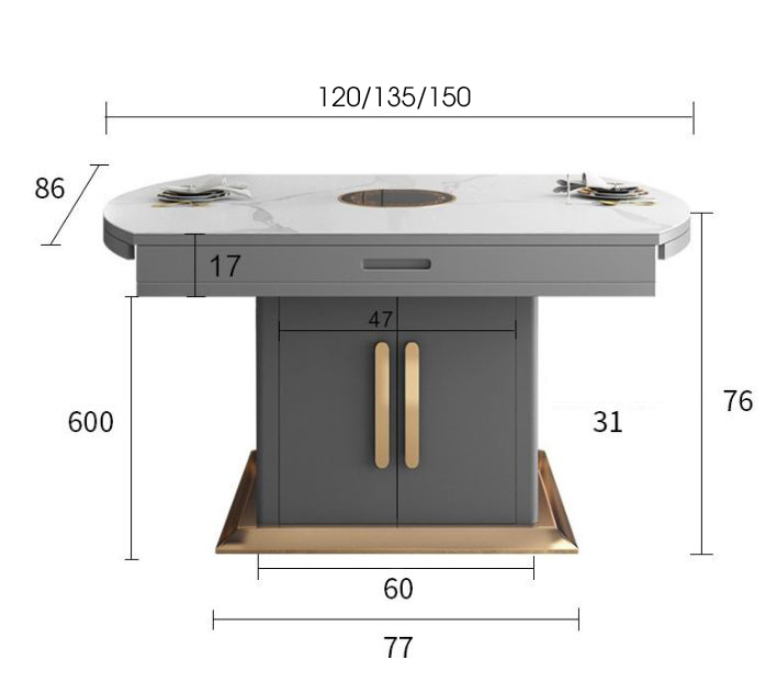 Mặt bàn hình bầu dục với họa tiết vân nhẹ nhàng – tinh tế, khung chân dạng tủ độc đáo, tạo nên tổng thể cực chất, đem đến hiệu ứng về thị giác cực thu hút.