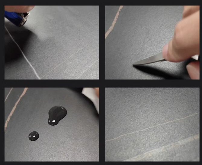 ▪️ Mặt đá nung cao cấp, mang đến độ bền vượt trội và khả năng chống ẩm mốc hoàn hảo. Mặt đá này còn có khả năng chịu lực và chịu nhiệt khá tốt, vì vậy bạn không cần lo lắng khi để đồ ăn nóng trực tiếp lên mặt bàn.