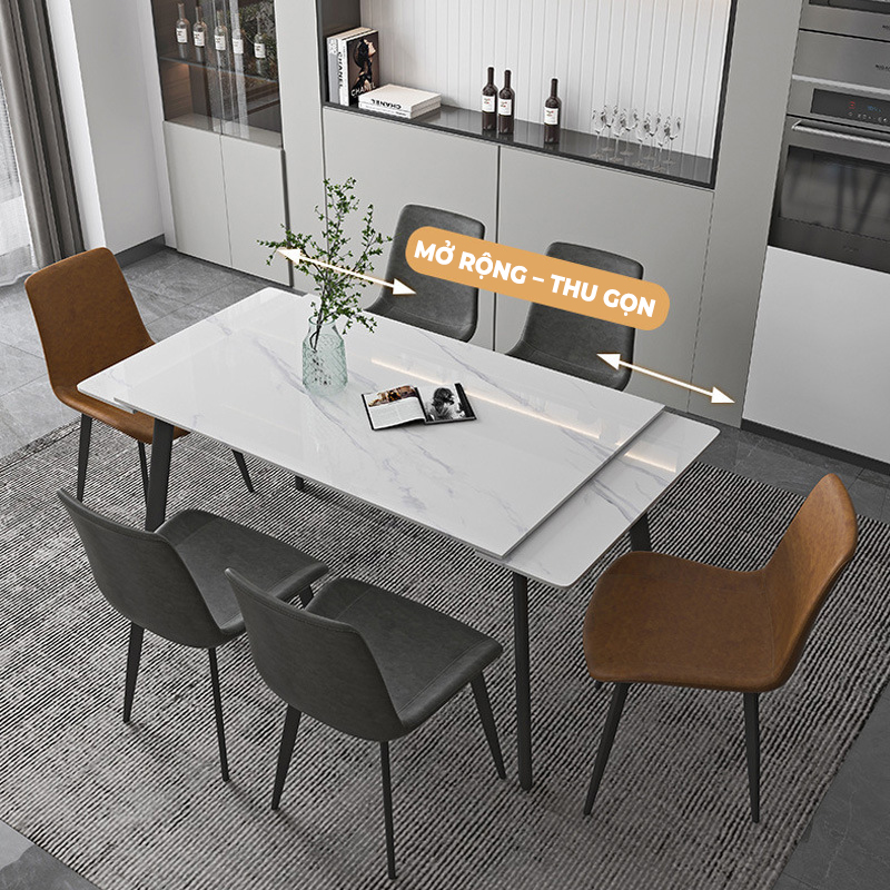 Bạn muốn tìm bộ bàn ăn có thể thay đổi diện tích mặt bàn một cách linh hoạt, phù hợp với những gia đình có số người sử dụng linh động? Và Bàn Ăn Thông Minh Mở Rộng Mặt Đá ERICA – DP18 chính là sản phẩm đáp ứng được yêu cầu đó, hứa hẹn sẽ mang đến không gian bày trí đột phá, nhiều bất ngờ.