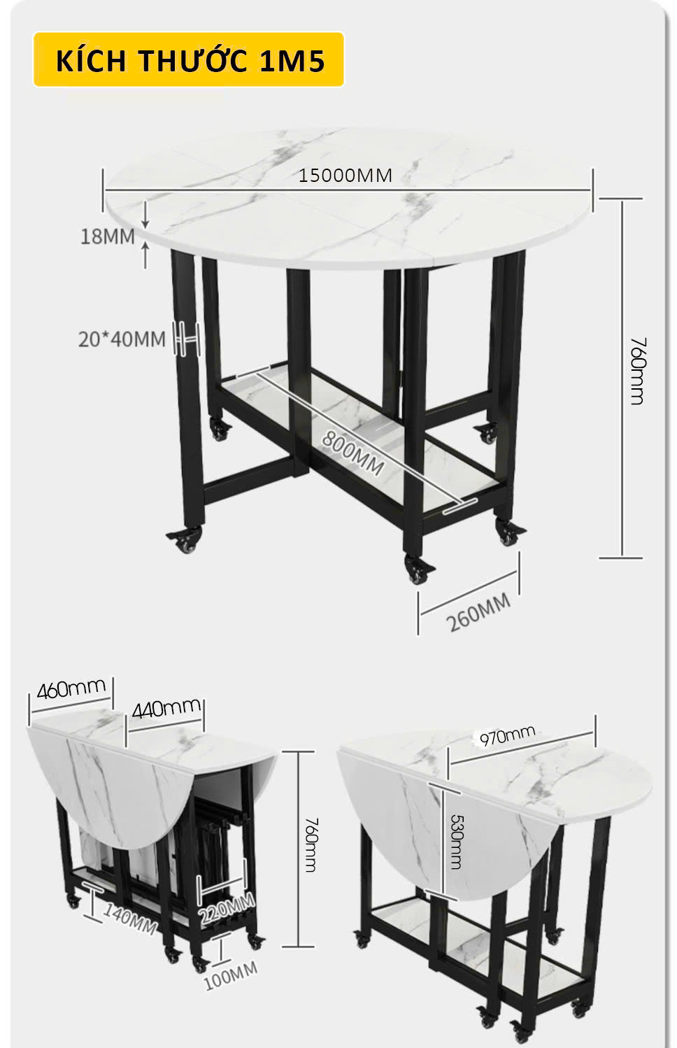 | Tên sản phẩm: Bộ Bàn Ăn Tròn Thông Minh Gấp Gọn ERICA | |