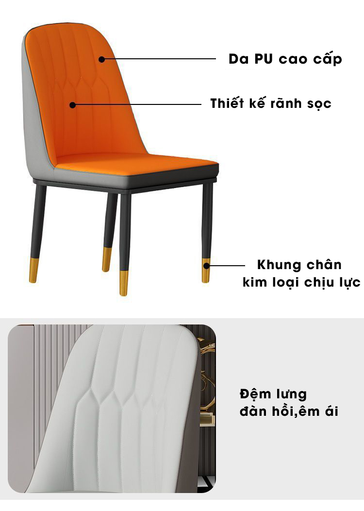 Ghế monet đi kèm theo bộ sở hữu thiết kế thanh lịch, không hề lỗi thời theo thời gian, trông đơn giản nhưng lại cực kỳ sang trọng. Đệm mút bọc da PU cùng họa tiết ô sọc dọc nổi bật vừa gây hiệu ứng bắt mắt vừa tạo cảm giác thoải mái, dễ chịu khi tựa vào. Khung chân kim loại chịu lực, phủ sơn tĩnh điện màu đen chống gỉ, bọc núm màu vàng làm điểm nhấn, khiến chiếc ghế trông xịn sò hơn.