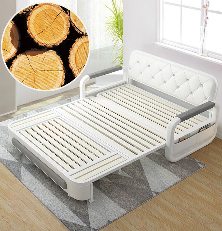 Khung giá bằng kim loại cao cấp, được phun sơn màu trắng trông khá hiện đại. Kết hợp với hệ giát giường nan gỗ, tạo nên tổng thể cực kiên cố, ổn định & chắc chắn.