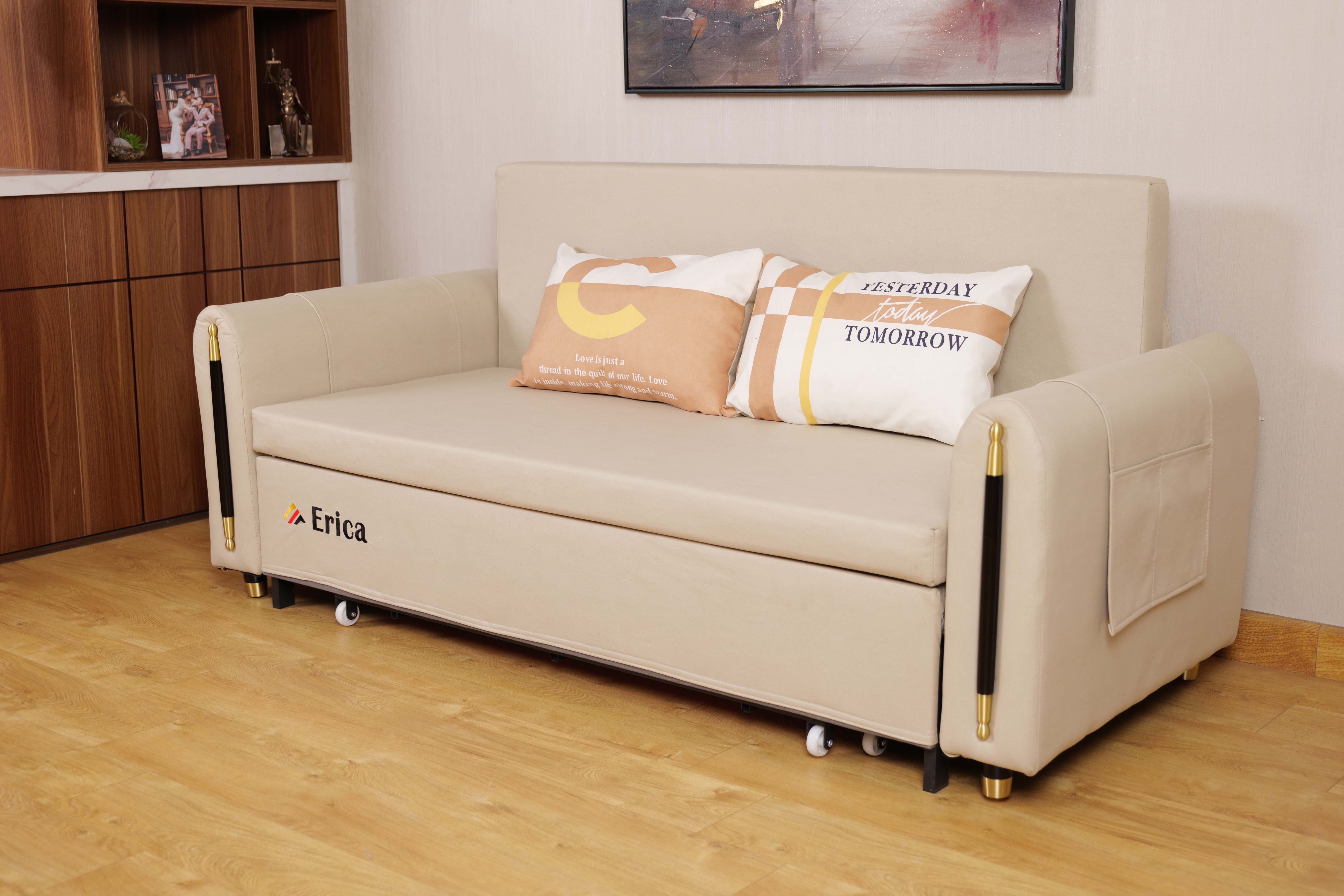 Đặc biệt, phần khung của sofa giường đều bằng kim loại với kết cấu linh hoạt, nên các bé hoàn toàn có thể nâng hạ một cách dễ dàng để chuyển đổi công năng từ ghế sofa thành giường ngủ và ngược lại.