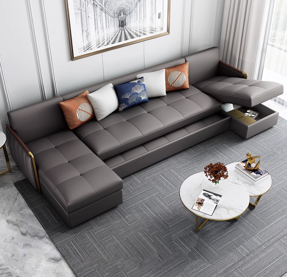 Cũng là sự lựa chọn hoàn hảo cho phòng khách nhà ống. Sản phẩm cho phép nhiều người ngồi cùng một lúc mà không tạo cảm giác chật chội. Trên thị trường có rất nhiều loại sofa bed chữ U, do vậy, bạn dễ dàng chọn lựa được theo phong cách và không gian nhà mình.