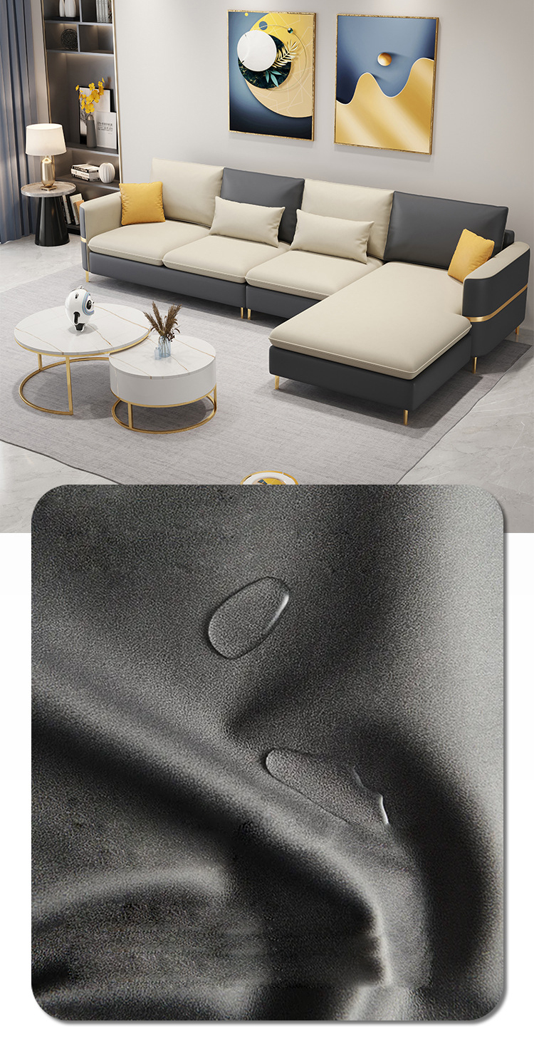 Bề mặt vải của sofa sử dụng chất liệu vải kỹ thuật ứng dụng công nghệ nano đời mới, có lớp màng bảo vệ giúp gia tăng tuổi thọ sản phẩm. Chất vải dày dặn, mềm mại, chống thấm, chống bám bẩn, hạn chế trầy xước và dễ dàng vệ sinh. Điều này không chỉ đảm bảo độ bền mà còn mang lại cảm giác thoải mái, thân thiện với da khi sử dụng.