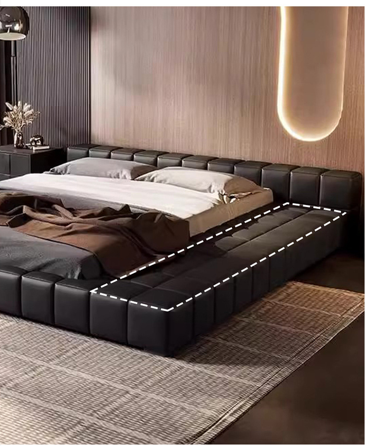 Khoang lưu trữ rộng rãi được giấu khéo léo bên dưới, giúp người dùng sắp xếp chăn ga, gối, quần áo một cách gọn gàng, tiết kiệm diện tích tối đa.