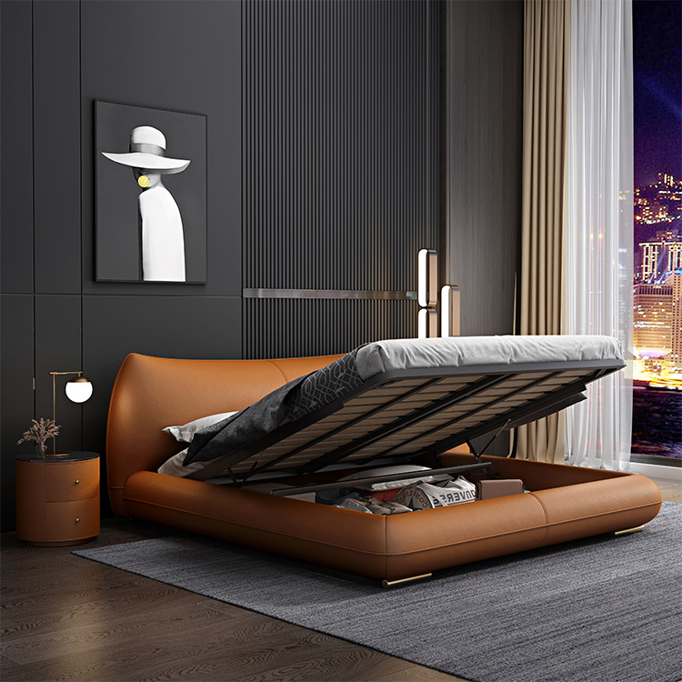 Lớp da bò thật ở bề mặt trên cùng mang đến sự mềm mại, êm ái và sang trọng. Không chỉ đẹp mắt, chất liệu này còn có độ bền cao, ít bị nứt gãy trong quá trình sử dụng. Bề mặt da được xử lý bằng công nghệ sơn bóng tiên tiến, có khả năng chống bám bẩn, kháng ẩm và dễ dàng vệ sinh, giúp giường luôn giữ được vẻ đẹp tinh khôi như mới.