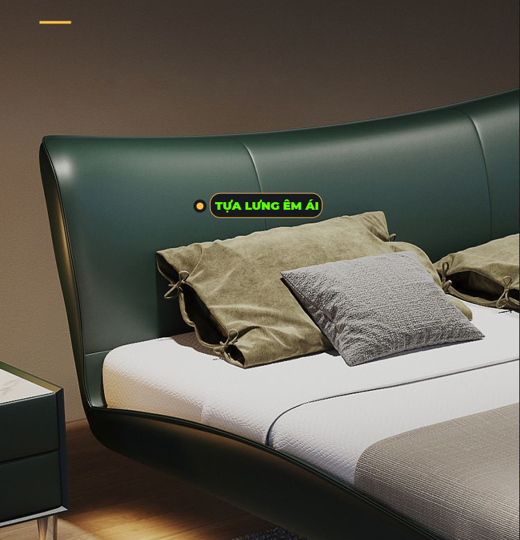 Trang bị dải đèn LED thông minh chạy dọc thân giường, kích hoạt qua cảm biến tự động, tạo ánh sáng dịu nhẹ, tiện lợi vào ban đêm. Đây không chỉ là điểm nhấn thẩm mỹ mà còn nâng cao trải nghiệm thư giãn và tiện nghi cho người dùng.