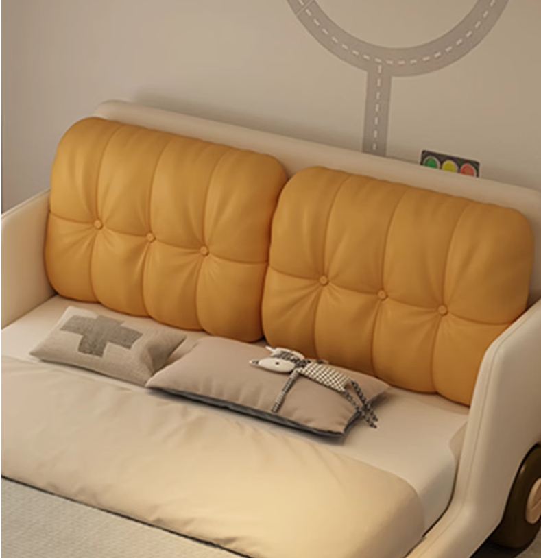 Đầu giường được bọc nệm êm ái, phù hợp để bé đọc sách hay nghe kể chuyện trước giờ ngủ. Thành giường cong tròn bảo vệ bé trong lúc nằm hoặc nô đùa. Sự kết hợp giữa tính năng nghỉ ngơi và hình dáng vui nhộn tạo nên không gian vừa an toàn vừa giàu tính giải trí.
