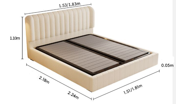 Khoang lưu trữ ẩn dưới nệm có sức chứa lớn, dễ dàng đóng mở để cất giữ chăn ga, gối hoặc đồ dùng ít sử dụng. Giải pháp này vừa tiết kiệm diện tích, vừa giúp phòng ngủ thêm gọn gàng, khoa học.