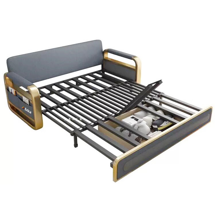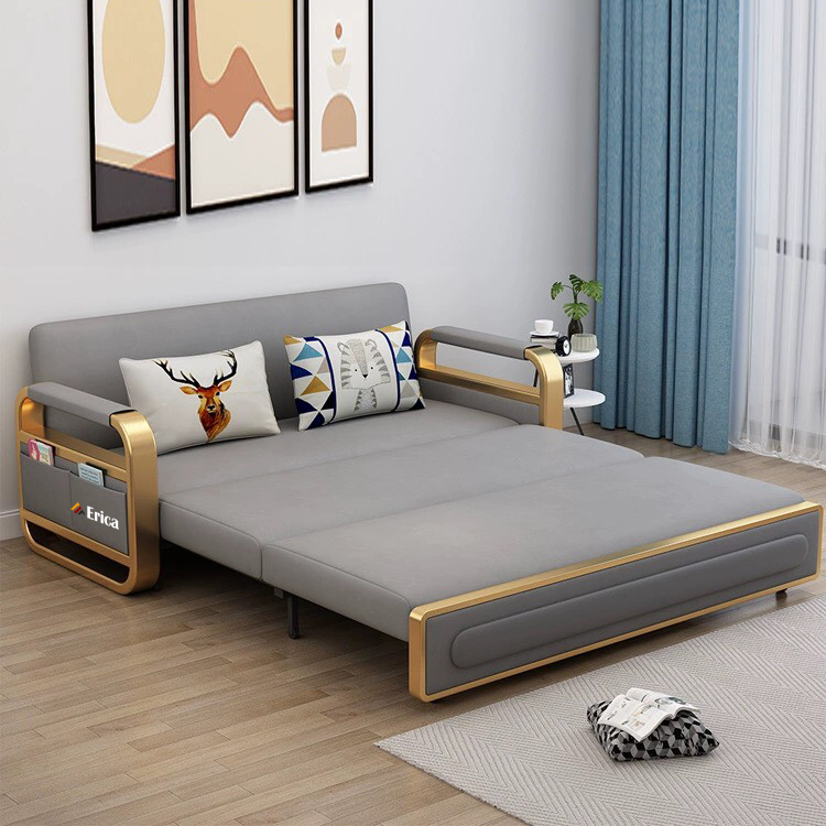 GIƯỜNG SOFA có tay vịn mạ vàng cuốn hút 👑Theo phong cách Ý đẳng cấp ✨Biến hình linh hoạt 3 chế độ 👍Có ngăn chứa đồ siêu rộng rãi ☘️ Đệm cao su non + bọt biển.