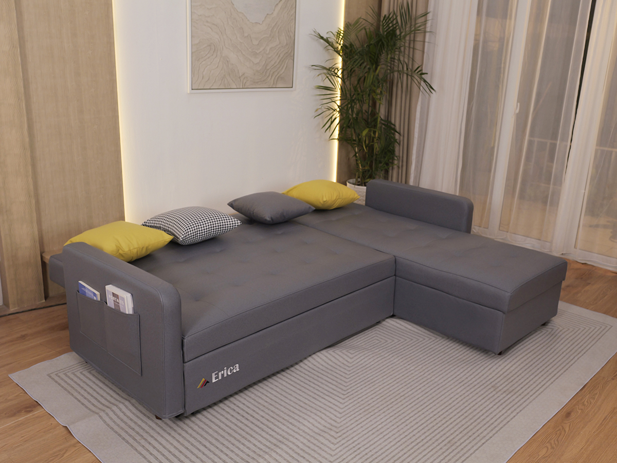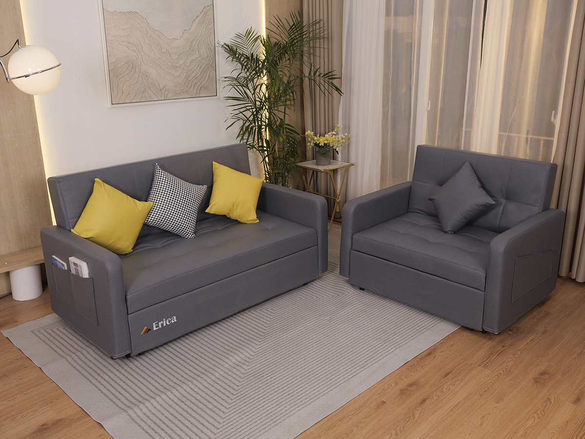 ERICA – LX1 là một sản phẩm nội thất đáng tự hào khi sở hữu khả năng chuyển đổi trạng thái nhanh gọn trong 30 giây. Tức là chỉ cần thao tác kéo nhẹ nhàng, đã có thể nhanh chóng biến salon phòng khách thành giường & giường thành ghế dễ dàng mà không cần tới sự giúp đỡ của bất kỳ ai.