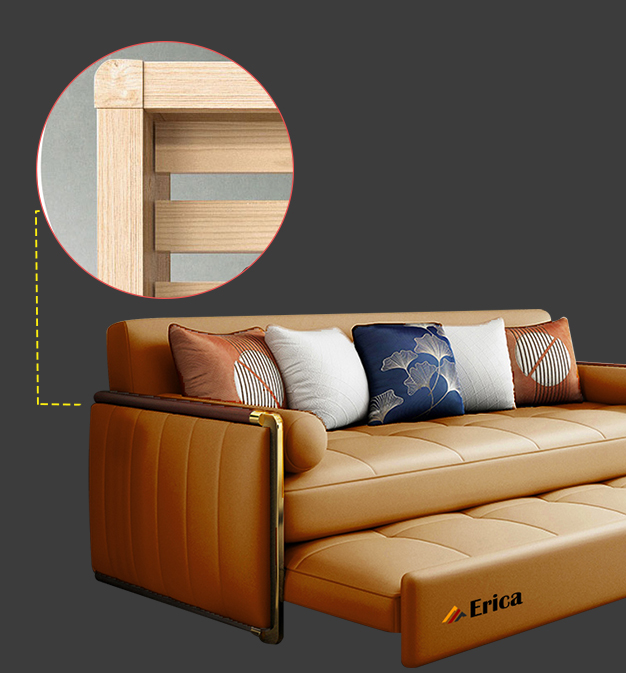 Giường Sofa Thông Minh Cao Cấp ERICA - LX2 sở hữu hệ thống khung giá có cấu tạo đặc biệt, là sự phối kết hợp của nhiều loại chất liệu: khung kim loại chắc chắn, đai lò xo hình chữ S táo bạo, băng thun đàn hồi dày dặn & màng chống bụi 3D cao cấp. Cho khả năng chịu lực cũng như sức đàn hồi vượt trội, ấn tượng hơn hẳn các dòng khác trên thị trường. Kết cấu bền chặt, đàn hồi nhanh chóng, nâng đỡ hiệu quả, cho cảm giác thoải mái, thư giãn mỗi khi sử dụng.