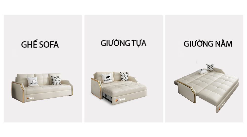 Một siêu phẩm nội thất cực ấn tượng, có thể đảm nhiệm nhiều chức năng trên mình. Vừa là chiếc sofa văng cho phòng khách lịch sự, vừa là chiếc sofa thư giãn có kết cấu nửa nằm, đồng thời còn là chiếc giường ngủ êm ái siêu rộng rãi. Tất cả nhu cầu sinh hoạt cơ bản đều được cung ứng đầy đủ mà vẫn đảm bảo được sự thoáng đãng cho không gian bày trí. Thiết kế đa chức năng kiểu này không chỉ tiết kiệm không gian mà còn giúp bạn tự do sáng tạo cho mình không gian sống lý tưởng.