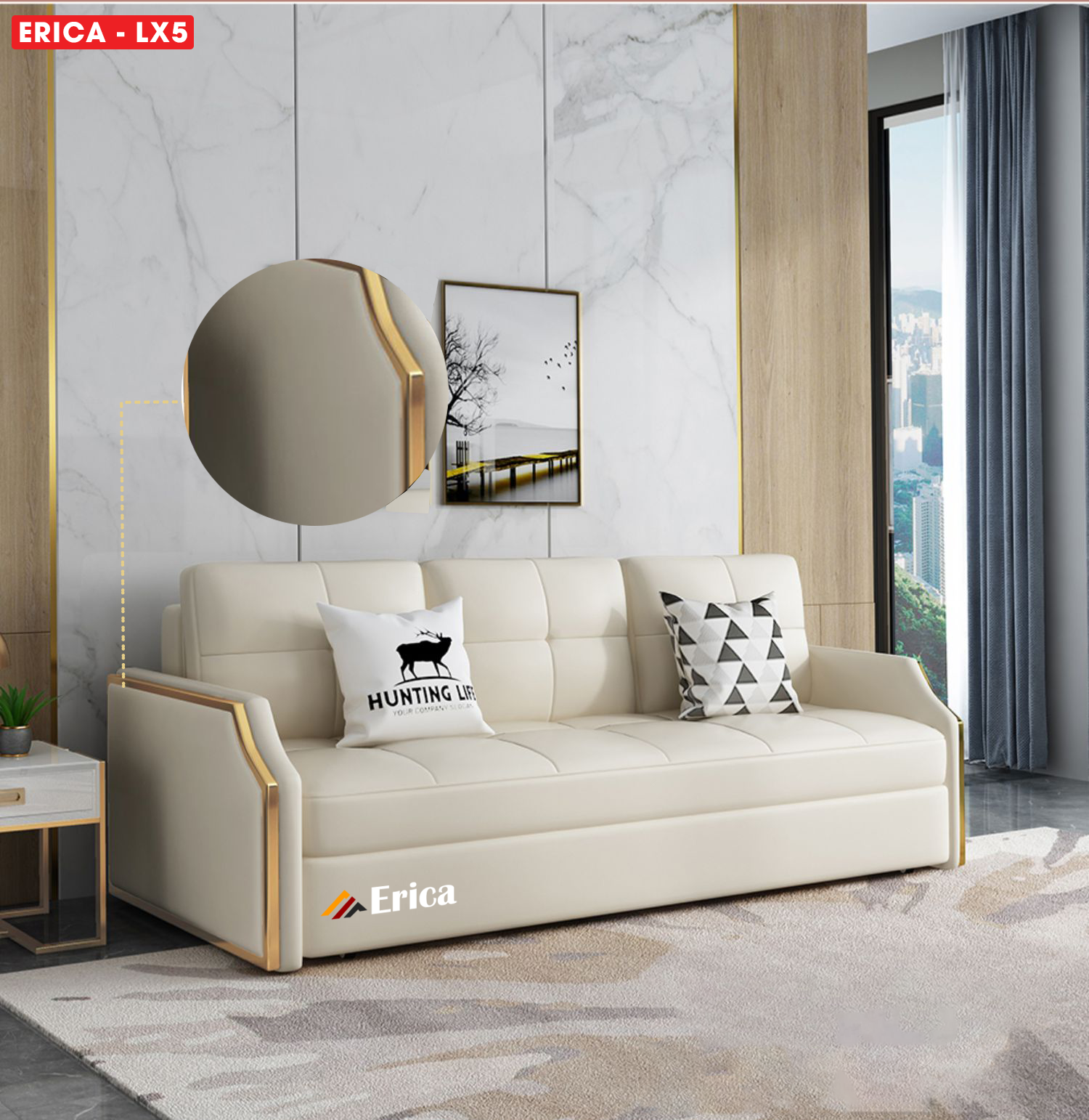Giường Sofa Thông Minh Cao Cấp ERICA - LX5 mang đến một vẻ đẹp tối giản nhưng không kém phần sang trọng cùng cảm giác dễ chịu, thoải mái nhất mỗi khi sử dụng.