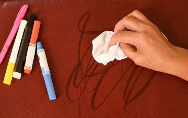 Nếu sofa giường da bị dính mực của các loại bút bi, bút lông,… thì bạn hãy dùng hỗn hợp “giấm gạo, rượu, cồn pha với nước ấm” để lau.