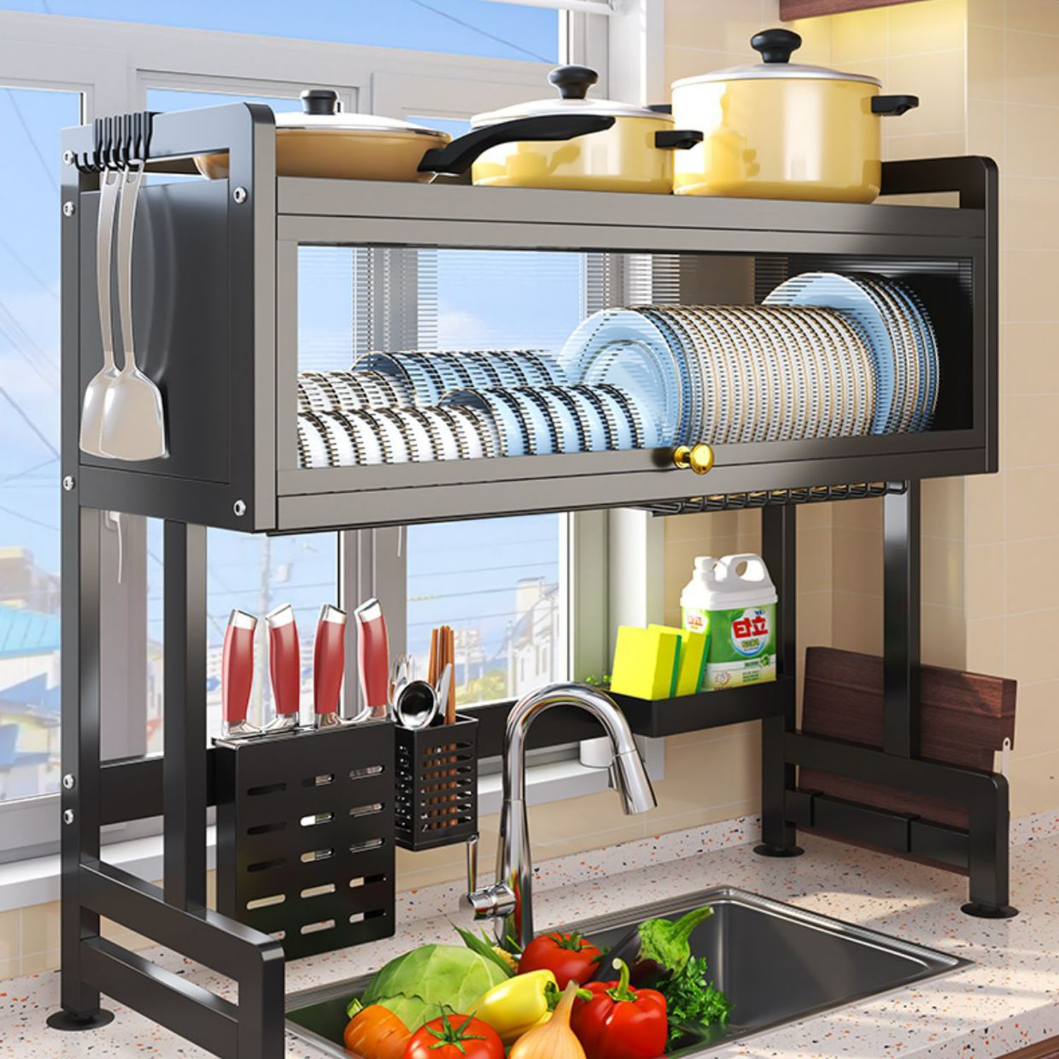 Kệ để chén bát đa năng có nắp đậy