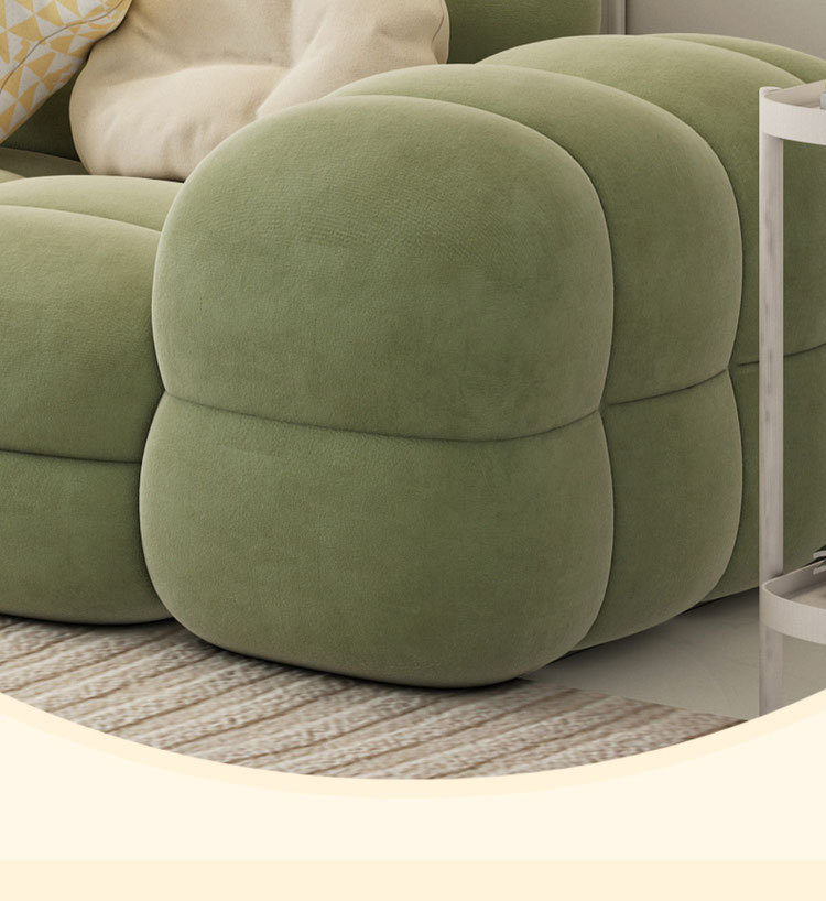 Bề mặt sofa được bọc bằng vải nhung bông cao cấp đã qua chọn lọc kỹ lưỡng. Loại vải này không chỉ có vẻ ngoài sang trọng mà còn bền chắc, chống xước, chống mài mòn và rất thân thiện với làn da. Ngoài ra, vải còn có độ thoáng khí tốt, giữ ấm vào mùa đông và mát mẻ vào mùa hè.