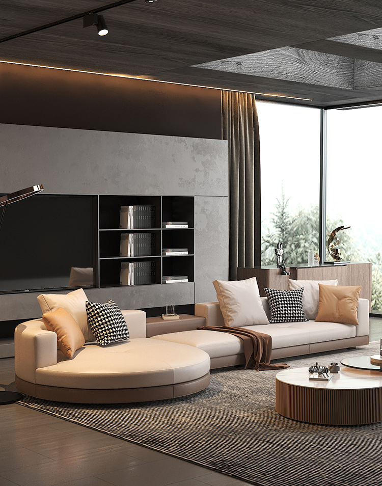 Được tạo nên từ 5 khối ghế liên kết với nhau, ERICA – NS35 tạo thành bố cục hình chữ U độc đáo. Mỗi khối ghế có kích thước riêng biệt về chiều dài nhưng lại đồng bộ về chiều sâu và độ cao, giúp tổng thể trở nên cân đối, bề thế. Với lợi thế này, sofa phù hợp nhất cho không gian phòng khách rộng lớn như biệt thự, liền kề hay căn hộ penthouse, mang đến sự hoành tráng và tiện nghi.