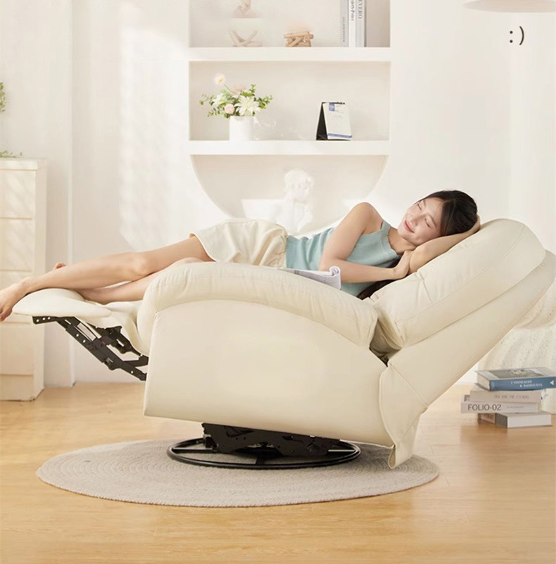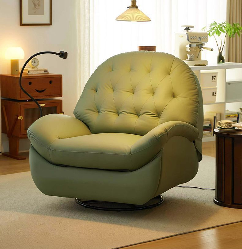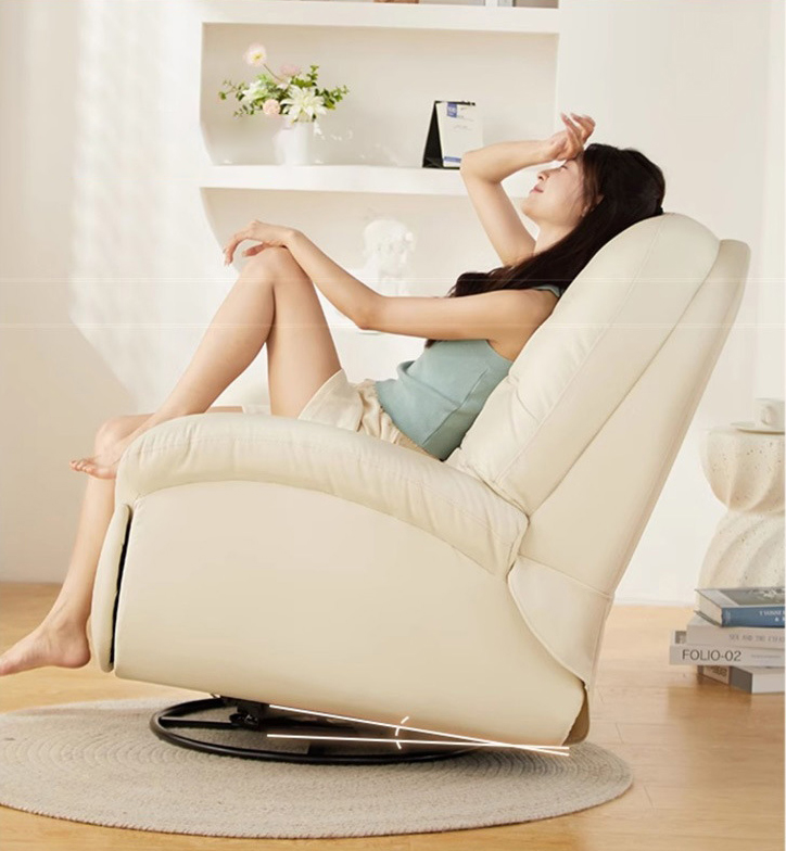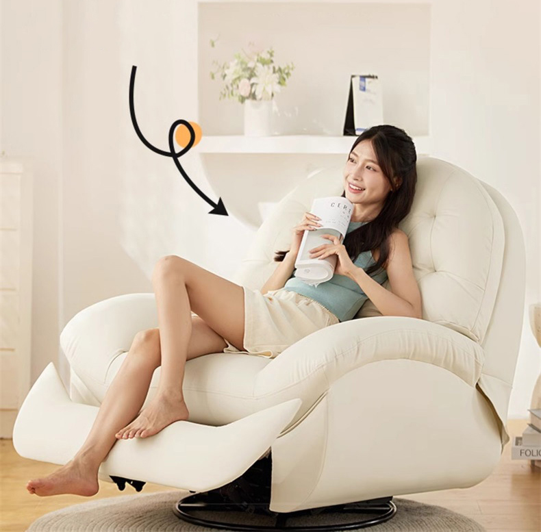 Chân sofa thiết kế tròn, có khả năng xoay 360 độ, cho phép bạn linh hoạt thay đổi tư thế mà không cần dịch chuyển toàn bộ ghế. Đặc biệt tiện lợi cho không gian sinh hoạt đa dạng như phòng khách, ban công hoặc phòng đọc sách,...