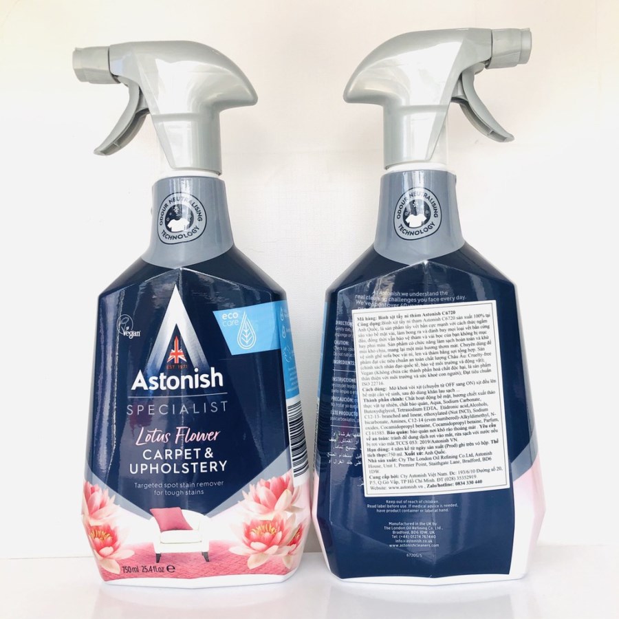 Bình xịt được sản xuất 100% tại Anh Quốc. Tẩy vết bẩn cực mạnh với cách thức ngấm sâu vào bề mặt chất liệu, rồi làm bong ra và đánh bay mọi loại vết bẩn cứng đầu, đồng thời bảo vệ sợi vải, nỉ không bị mục, không bị bay màu. Sản phẩm làm sạch hoàn toàn đồng thời khử mùi khó chịu, mang lại một mùi hương thơm mát cho bề mặt áp dụng.