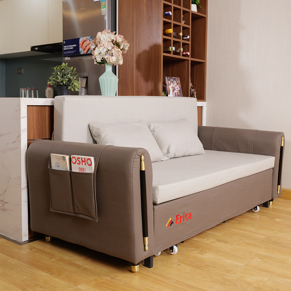 Khác với lối thiết kế cầu kỳ của châu Âu, giường sopha ERICA – ED11 lại đề cao sự tối giản, chú trọng tính ứng dụng trong đời sống hàng ngày. Các chi tiết trên sản phẩm đều được tính toán kỹ lưỡng, vận hành hiệu quả, mang tới sự tiện lợi mỗikhi sử dụng.